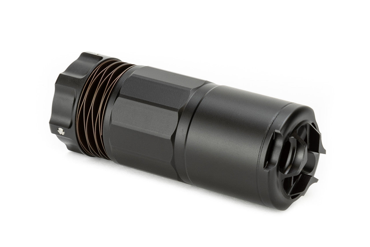 Especially effective on short barrels, the unique design of the DUAL-LOK™ Blast Shield directs concussive force forward allowing an end user to rapidly reconfigure muzzle device function. Ultra strong 17-4PH stainless steel and laser welded construction provides a robust material and build method to withstand intense use and full auto fire without fear of failure.