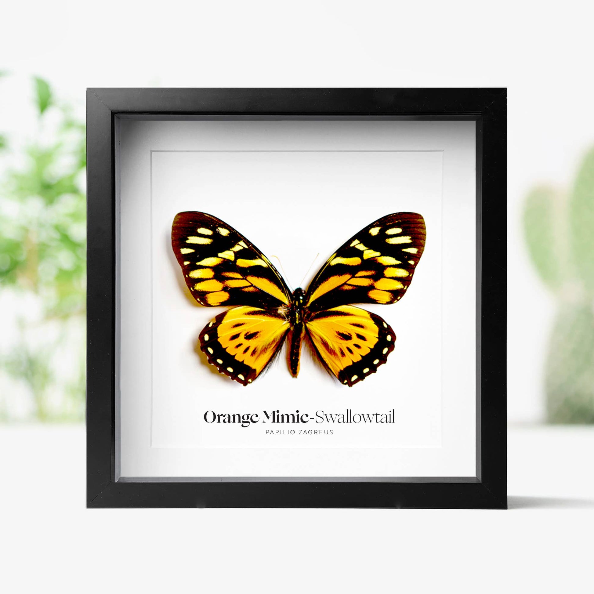 This Orange Mimic-Swallowtail (Papilio zagreus) has been hand set by our expert entomologists in our studio and elegantly mounted in a museum quality deep box frame.