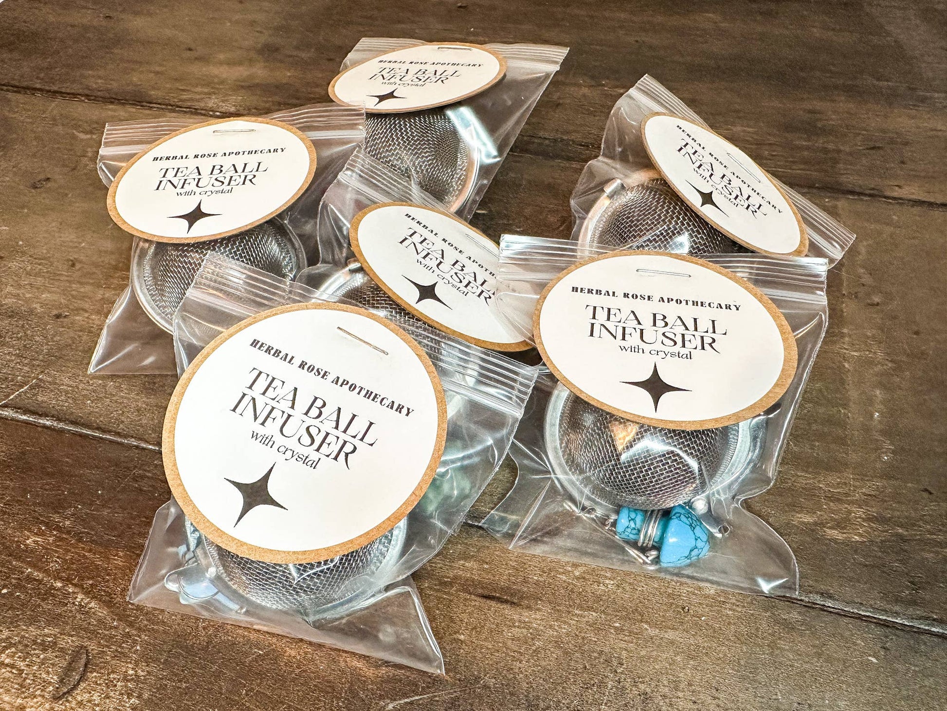 Each tea ball comes individually wrapped with a 2 in tea ball and hand wrapped crystal gemstone attached. *crystals vary