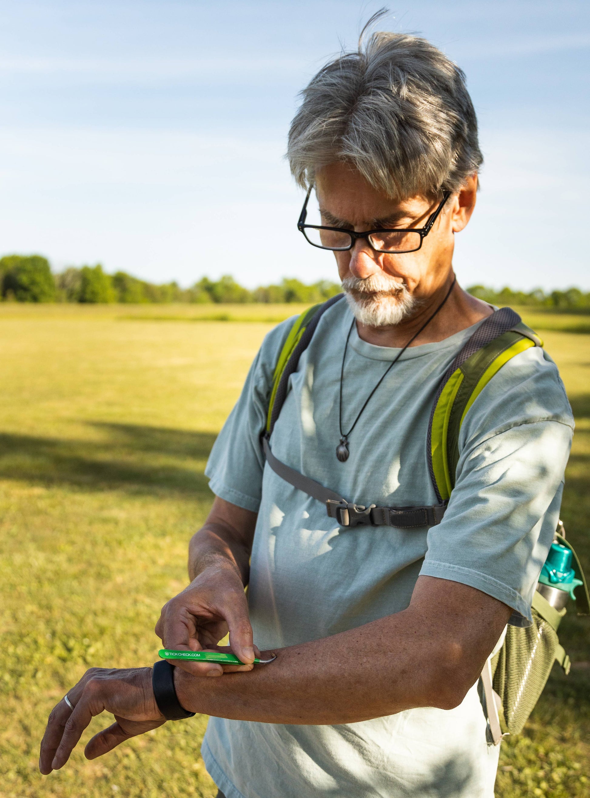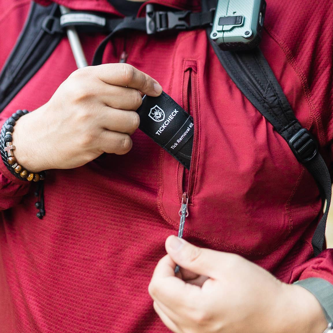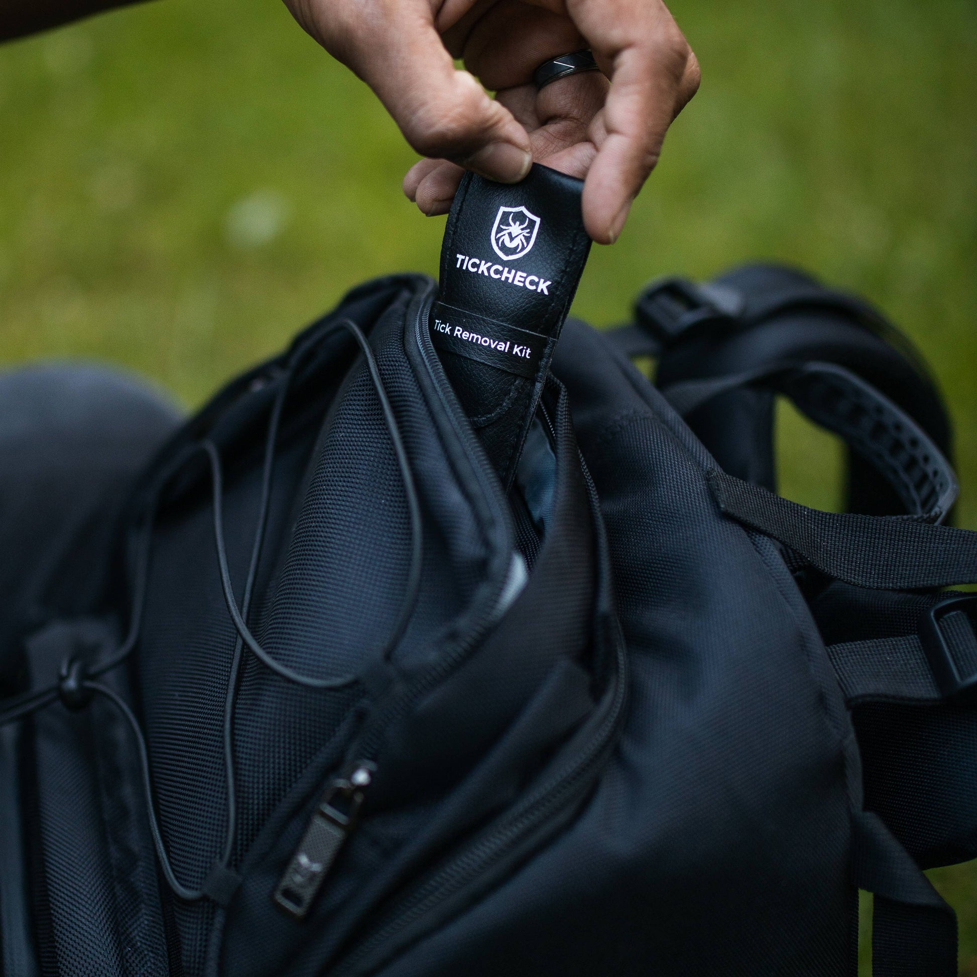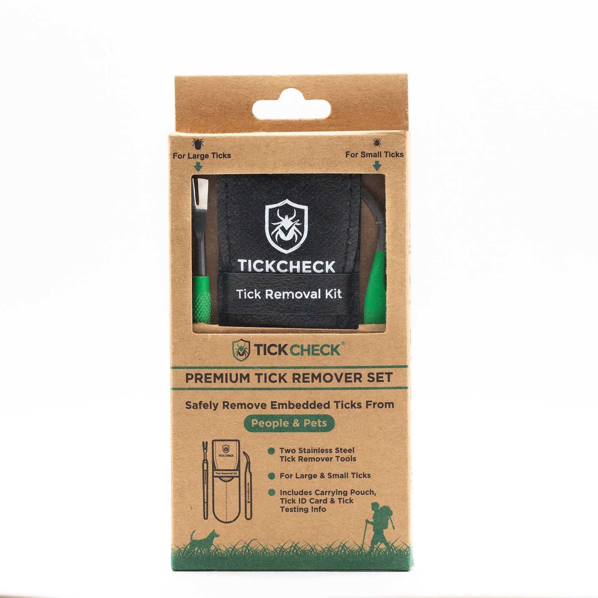 The Premium Tick Remover Kit is now sold in its brand-new eco-friendly retail packaging. The kit includes a stainless steel tick remover tool for safely removing larger embedded ticks and a specially shaped super-fine-tip pair of tweezers for removing nymphs and small deer ticks, both stored in a leatherette pouch. Each kit also includes a tick identification card with instructions on how to safely remove ticks.